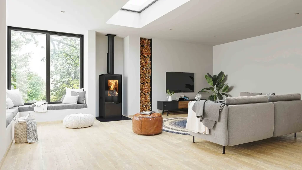 One of the key benefits is the ambience. A wood burner naturally becomes the focal point of a living space, bringing movement, glow and a sense of comfort that other heating options struggle to replicate. During colder months, this visual warmth can make a room feel inviting even before the heat fully builds, encouraging spaces to be used more often and for longer.
